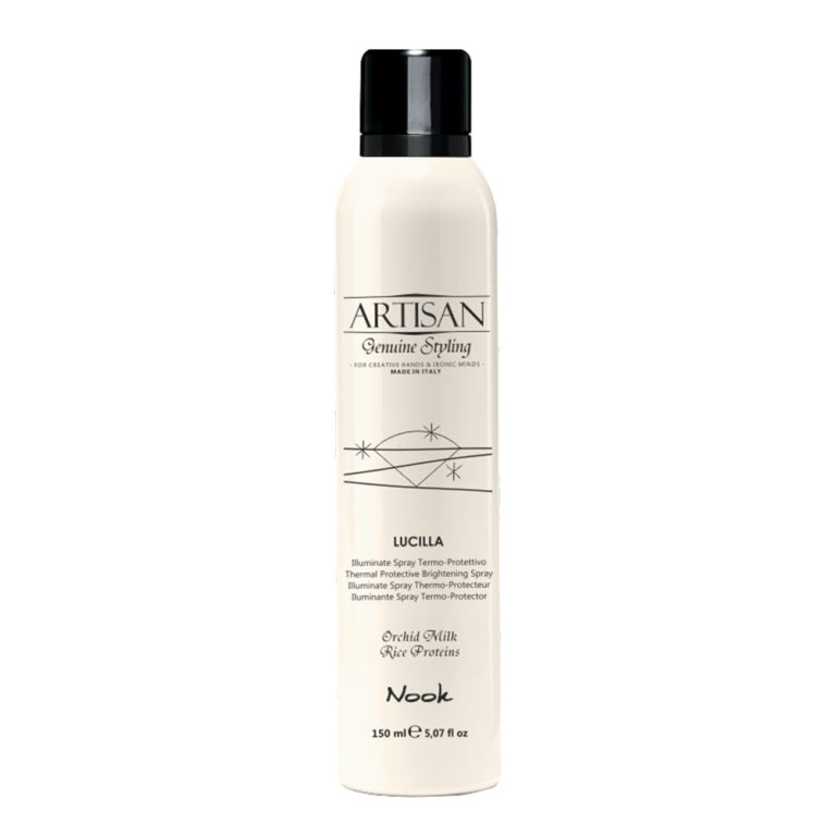 De Lucilla van de Artisan Genuine Styling lijn van Nook is een glansgevende spray met een thermobeschermende werking. De spray is krachtig in het aanbrengen van een beschermend laagje op het haar, ideaal voor styling met apparatuur (ook op hoge temperaturen). Inhoud 150ml.