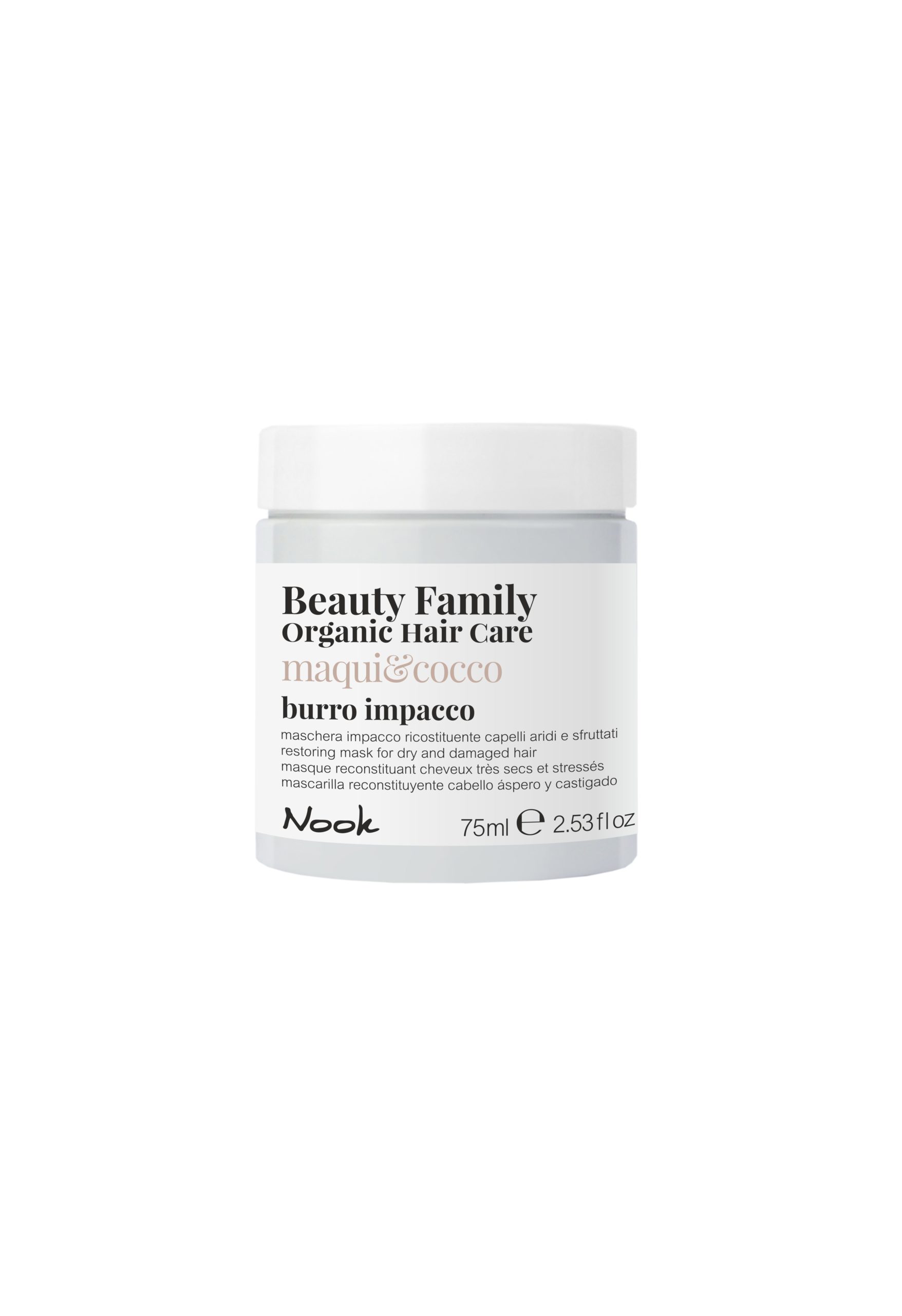 Het Maqui & Cocco masker van de Beauty Family Organic Hair Care lijn van Nook is een herstellend masker voor droog en beschadigd haar.
