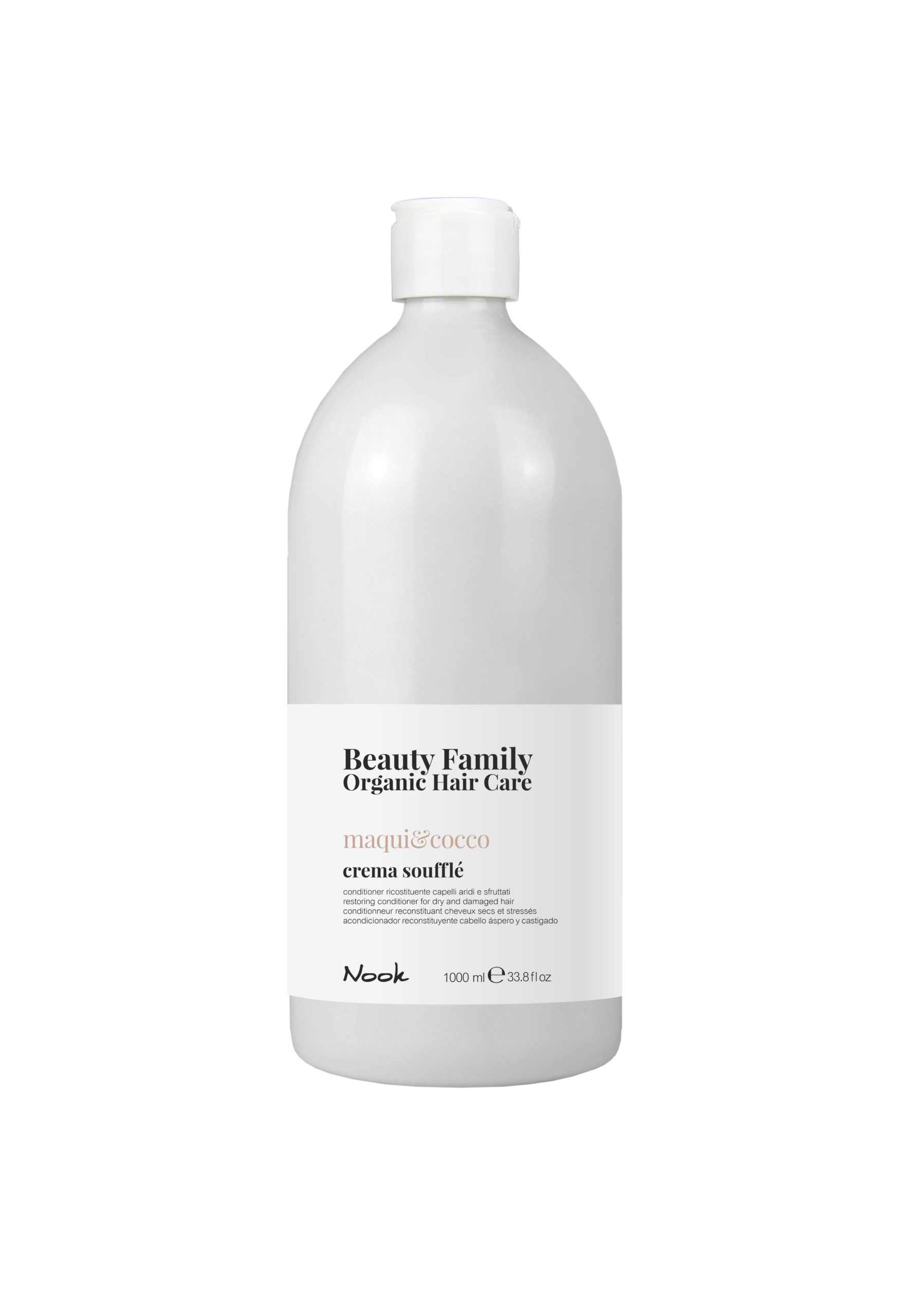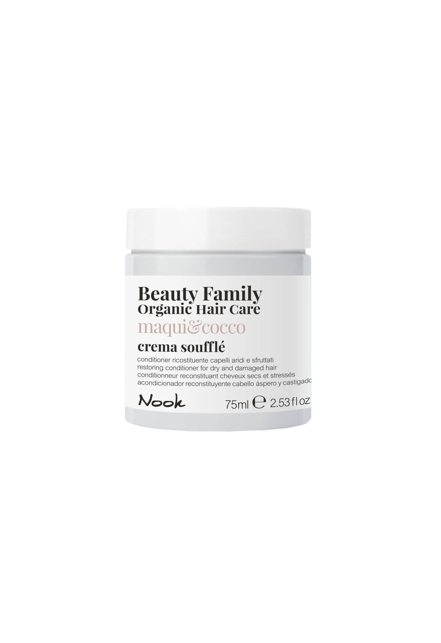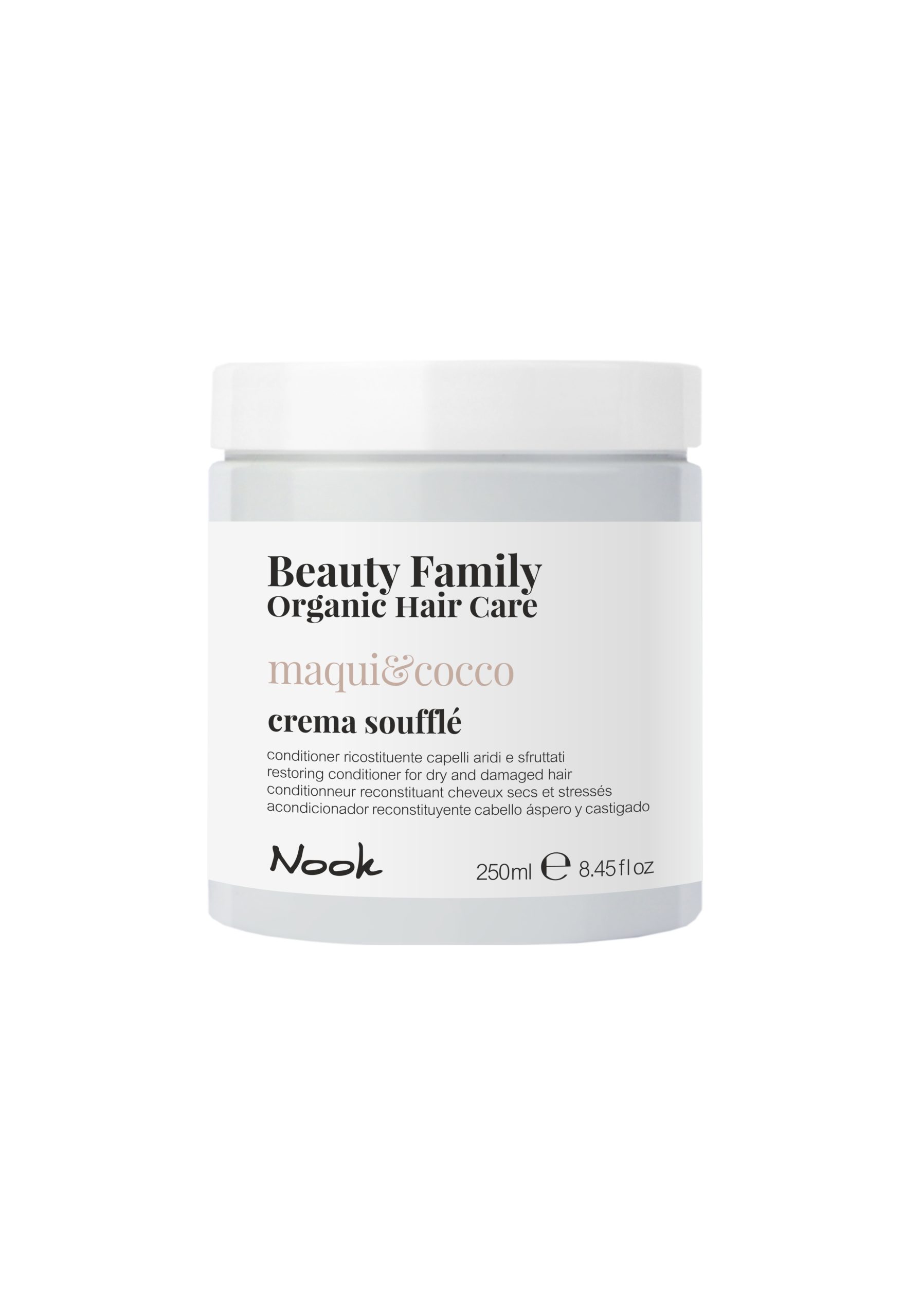 De Maqui & Cocco crema van de Beauty Family Organic Hair Care lijn van Nook is een herstellende conditioner voor droog en beschadigd haar.