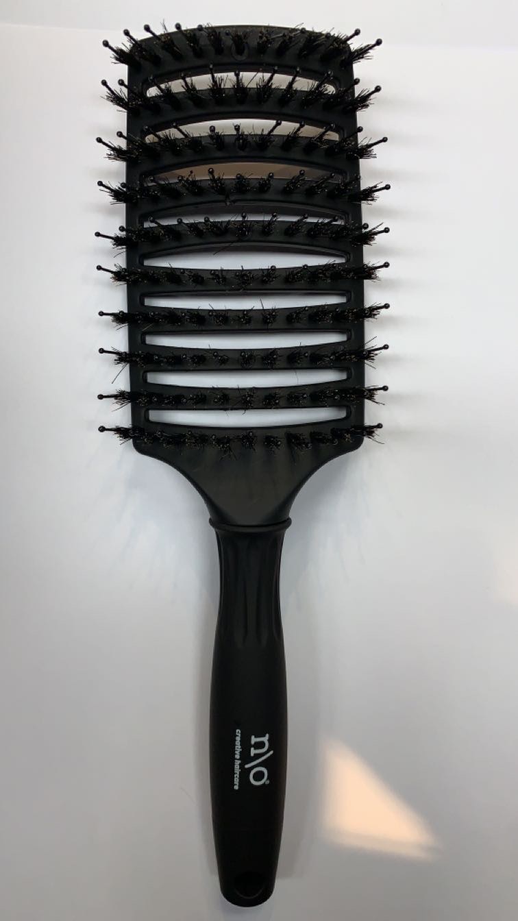Een gebogen ontluchtingsborstel die is gevormd om de lijn van uw hoofdhuid te volgen. 10 rijen microfiberhaar geven glans en zachtheid aan je haar, terwijl de 110 flexibele pinnen ervoor zorgen dat de borstel gemakkelijk door je haar gaat. Ideaal om te föhnen, volume toe te voegen en tegelijkertijd de droogtijd te verkorten.