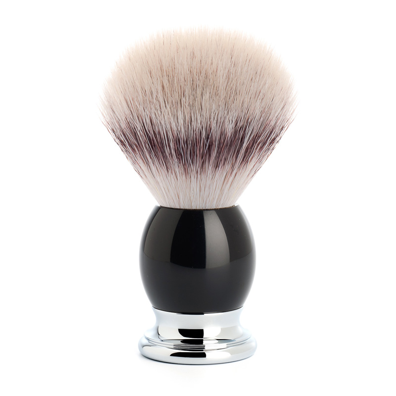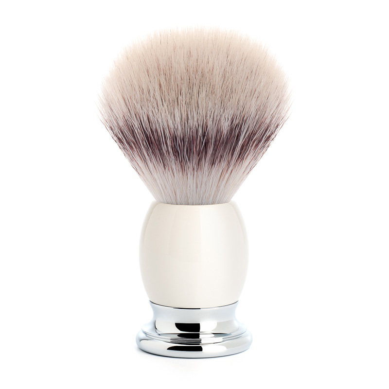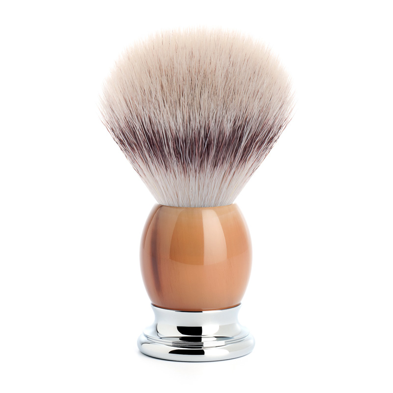 Kwast van Silvertip Fibre® . Hoornbruin, serie Classic van Mühle. 23 mm, maat L. Scheerkwast gemaakt van Silvertip Fibre® . Handvat is van gepolijstedelhars.