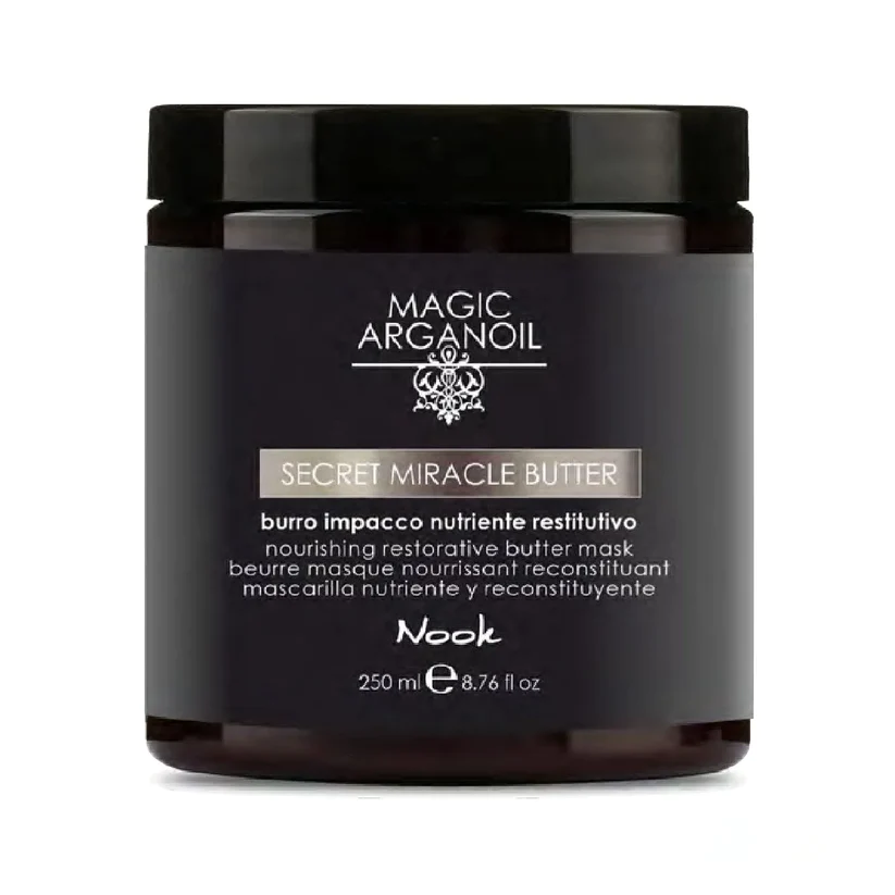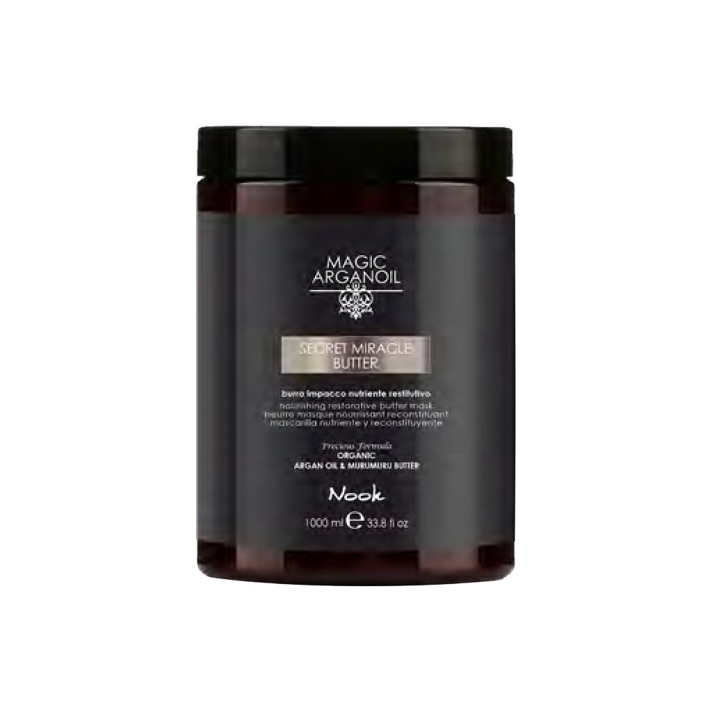 De Secret Miracle Butter van de Magic Arganoil lijn van Nook is een herstellend en intensief voedend masker voor droog, gevoelig en verzwakt haar. Met biologische Arganolie en Muru Muru boter.